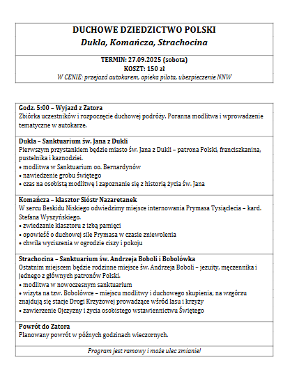 Ogłoszenie z Parafii pw. św. Katarzyny Aleksandryjskiej w Spytkowicach Pod hasłem roku duszpasterskiego „Pielgrzymi nadziei” wyruszy 45...